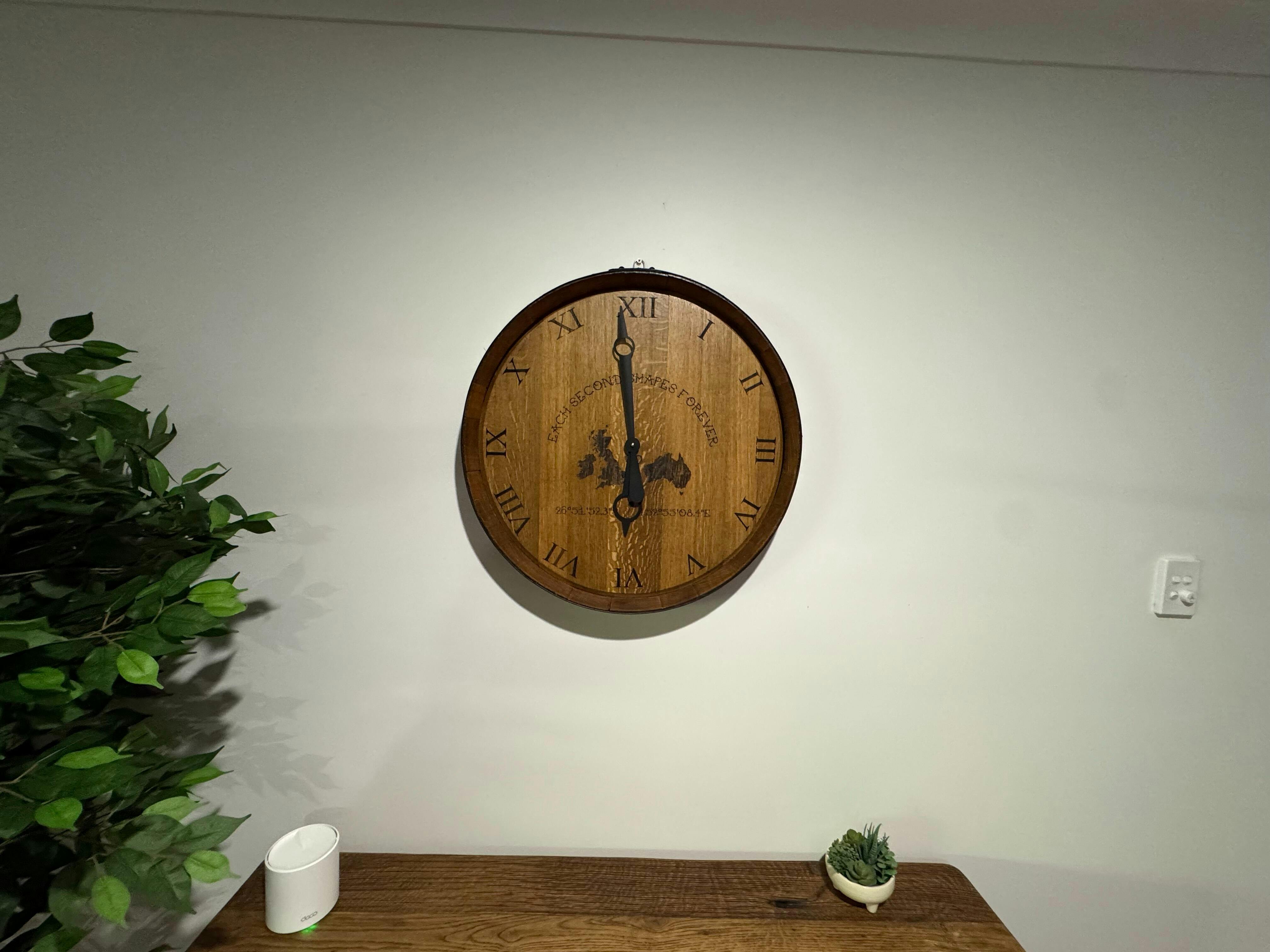 630mm Wine Barrel Head Clock – Handcrafted Reclaimed Wine Barrel Wall Clock